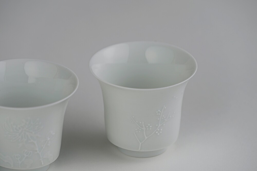 백자 매화양각 높은잔 & 백자 매화양각 개완잔