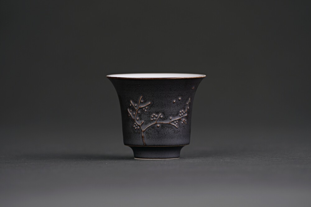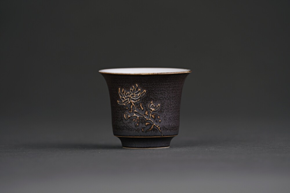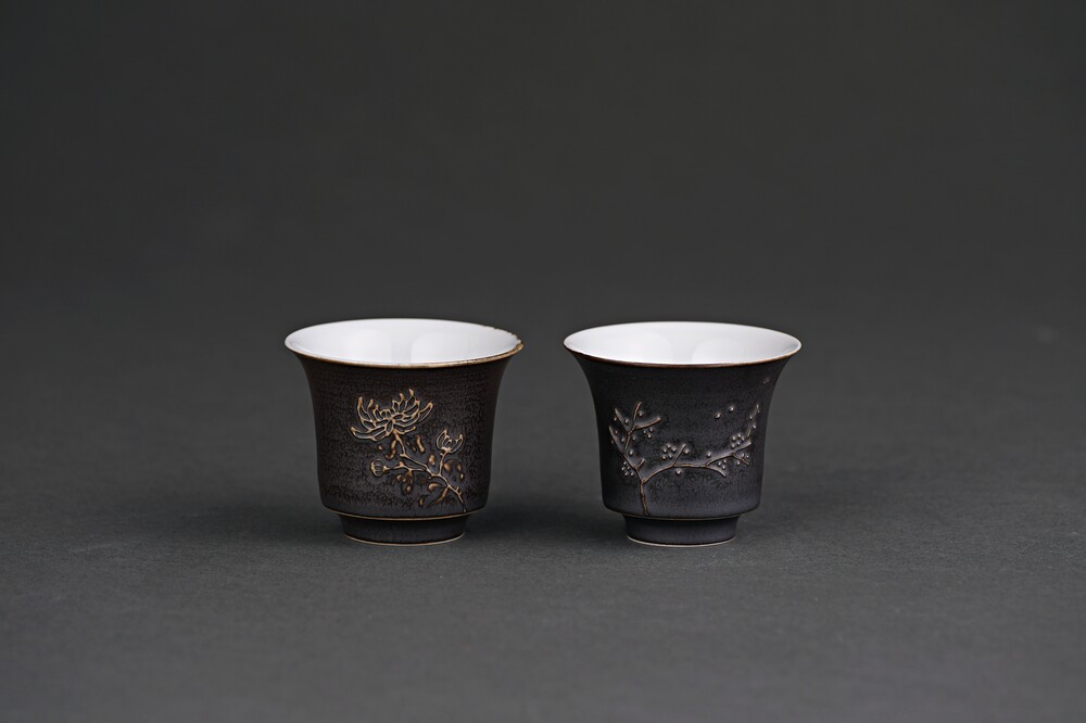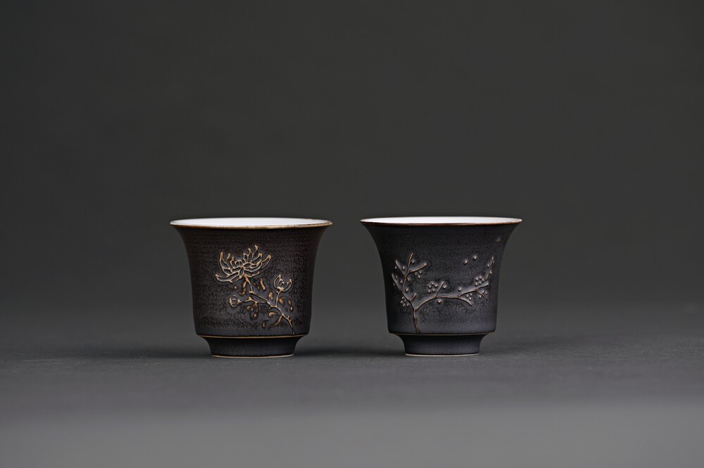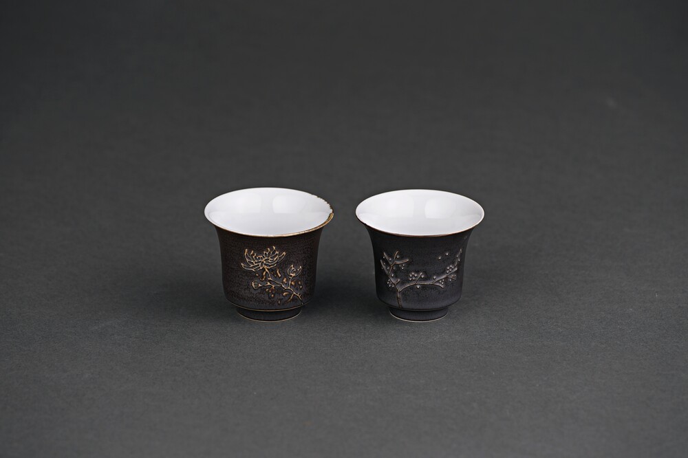 흑유 국화양각 개완잔 & 흑유 매화양각 개완잔