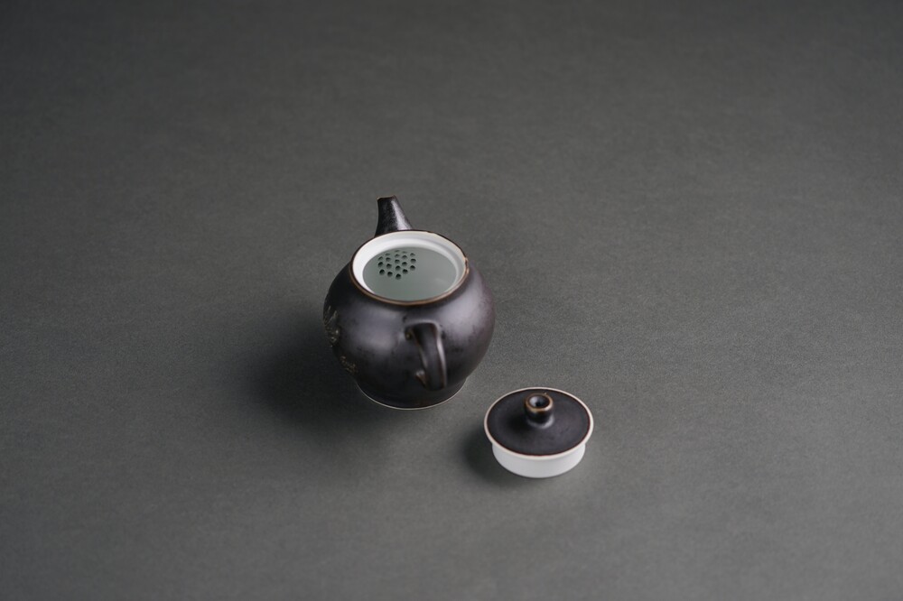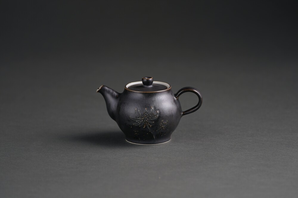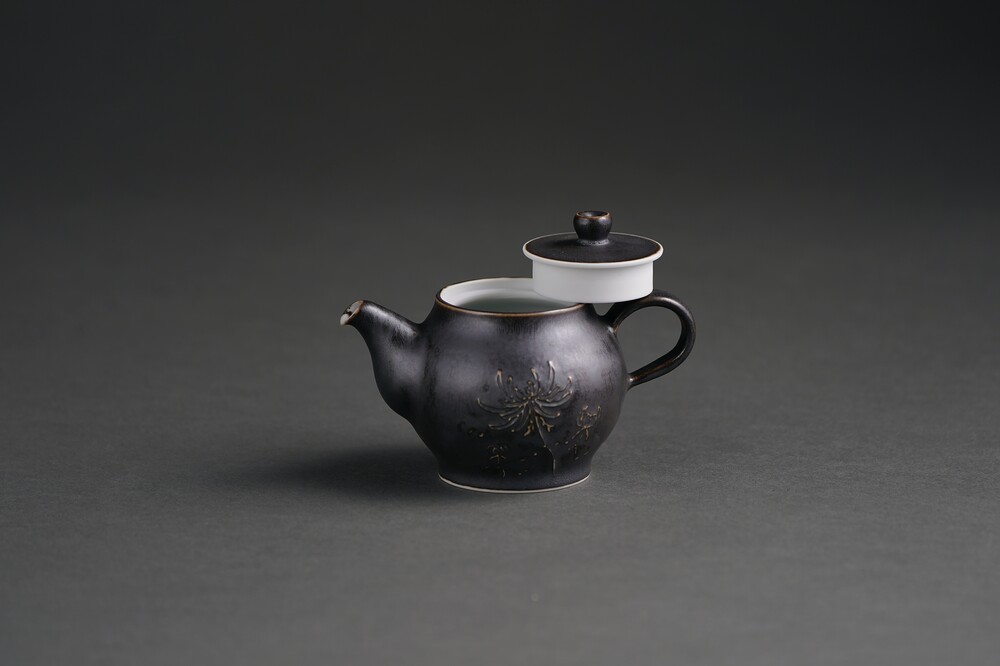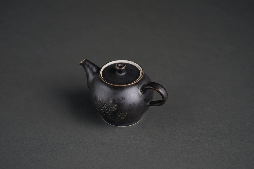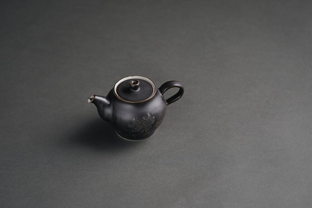 흑유 국화양각 다관